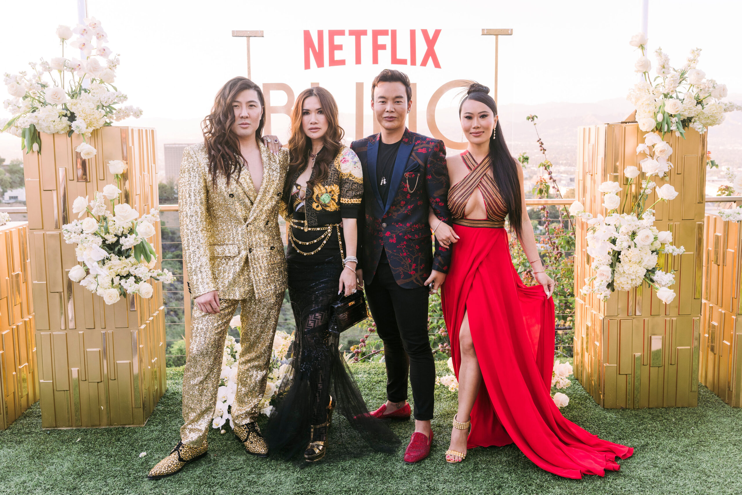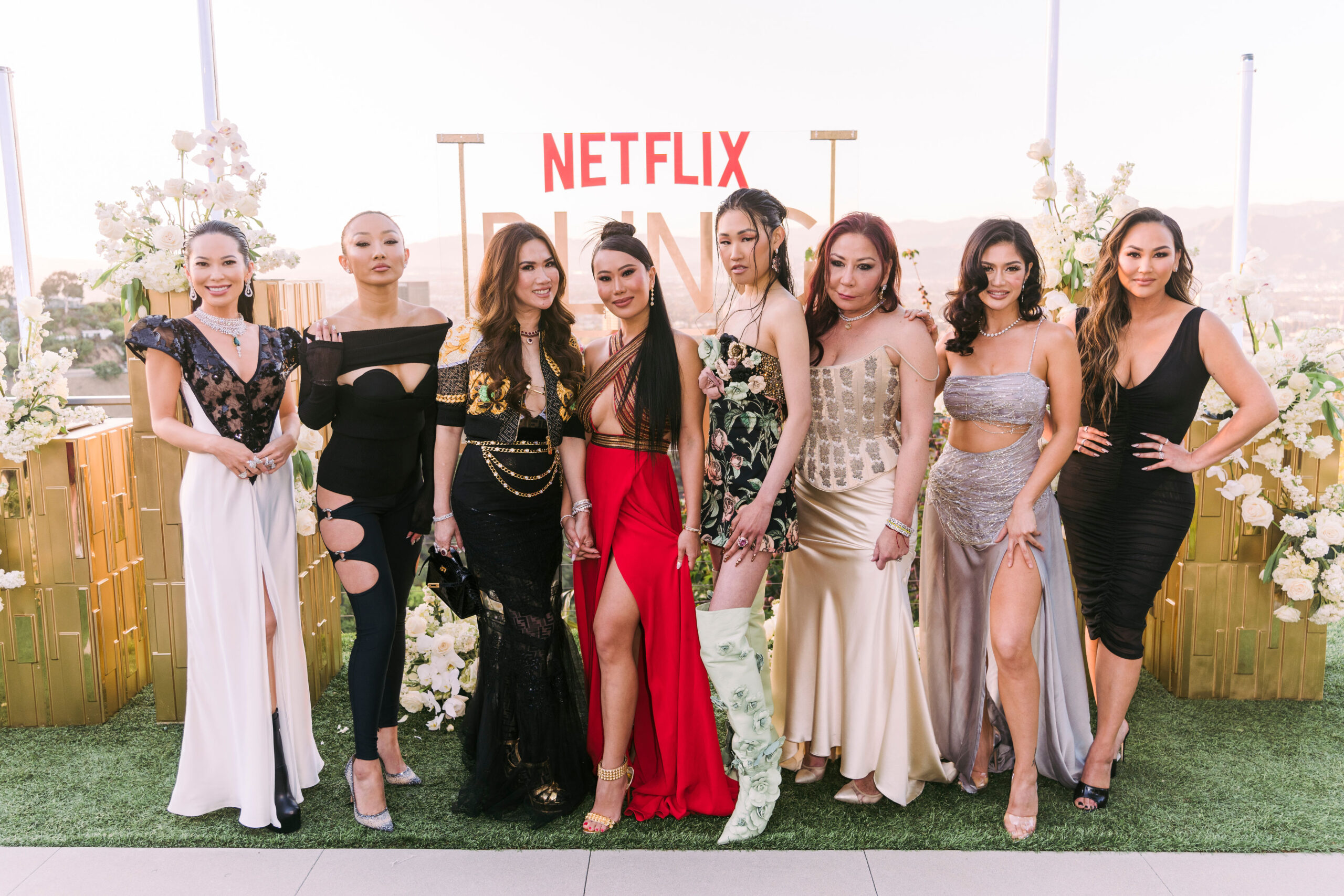 LOS ANGELES, CALIFORNIA – MAY 12: (L-R back) Dorothy Wang, Christine Chiu, Leah Qin, Mimi Morris, Kelly Mi Li, Jaime Xie, Anna Shay, Kim Lee, (L-R front) Dr. Gabriel Chiu, Kevin Kreider, Kane Lim, Guy Tang, Almar Guevarra and Yu Tsai attend ‘Bling Empire’ Season 2 Netflix Event on May 12, 2022 at a private residence in Los Angeles, California. (Photo by Andrew Toth/Getty Images for Netflix)