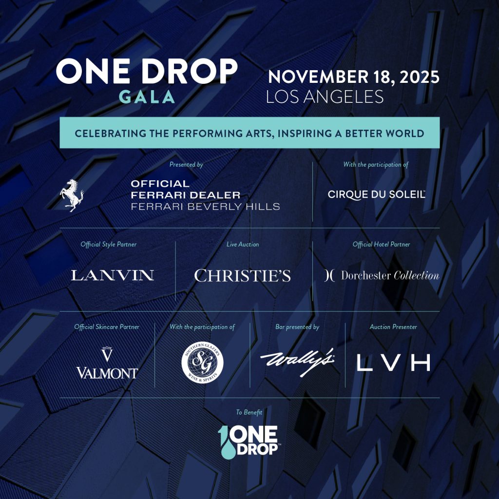 On November 18, 2025, Los Angeles will welcome an extraordinary new event to its cultural calendar as the One Drop Foundation (www.onedrop.org) hosts its inaugural LA Gala at the Audrey Irmas Pavilion, an evening where art, imagination, and purpose converge in support of safe water access worldwide.