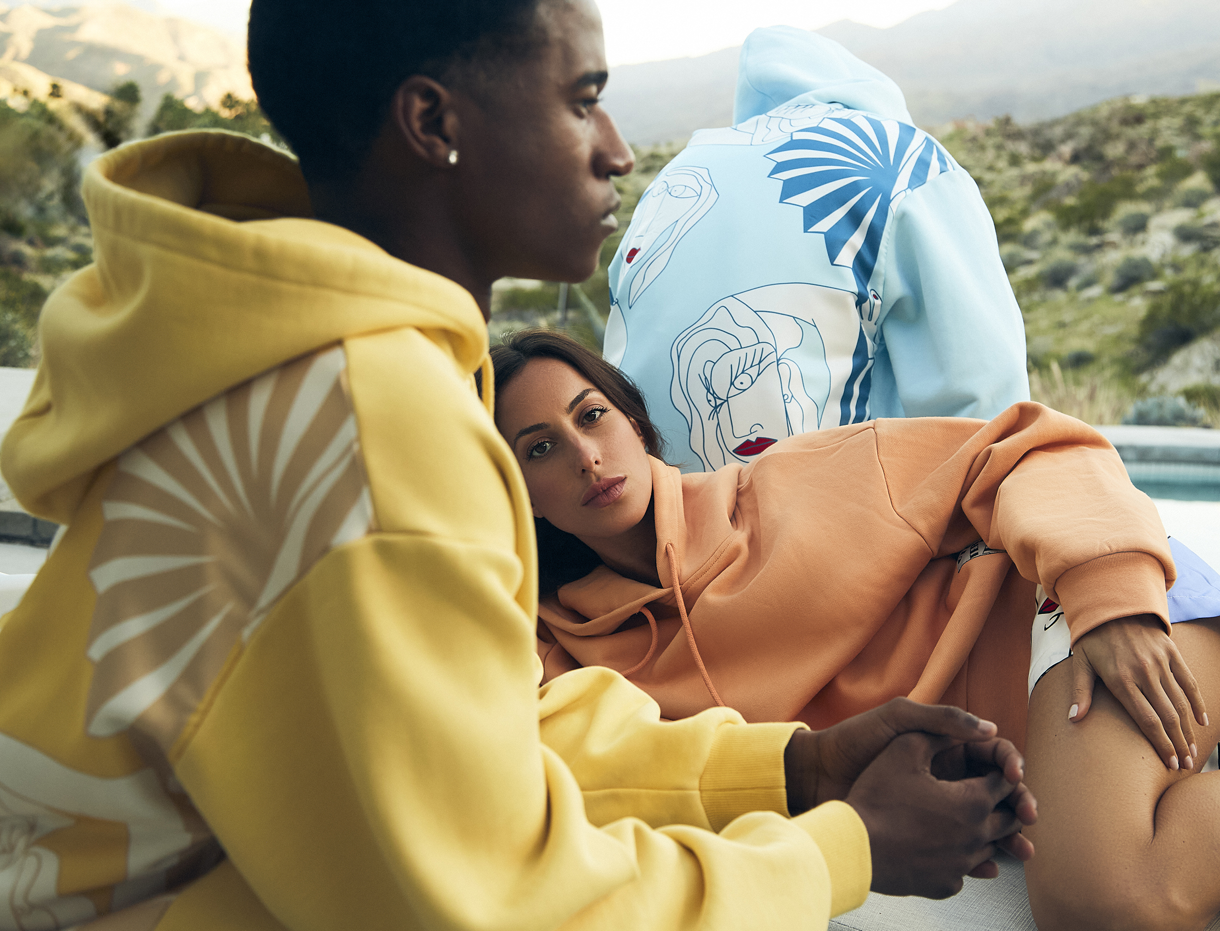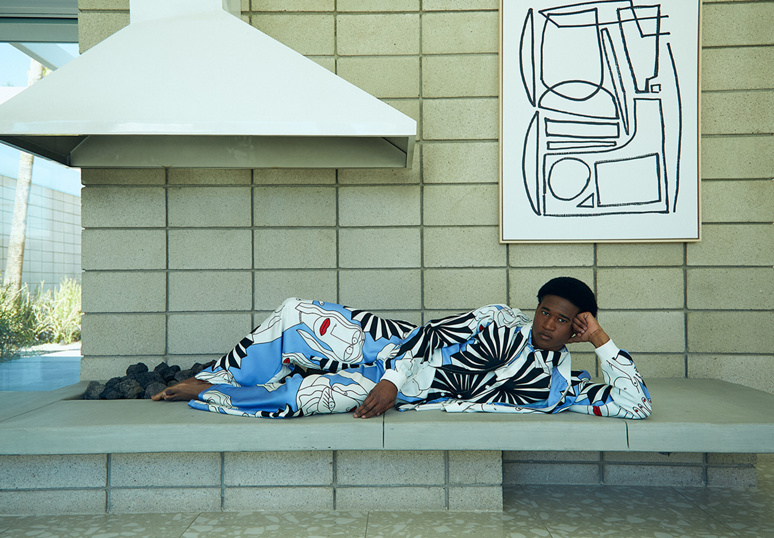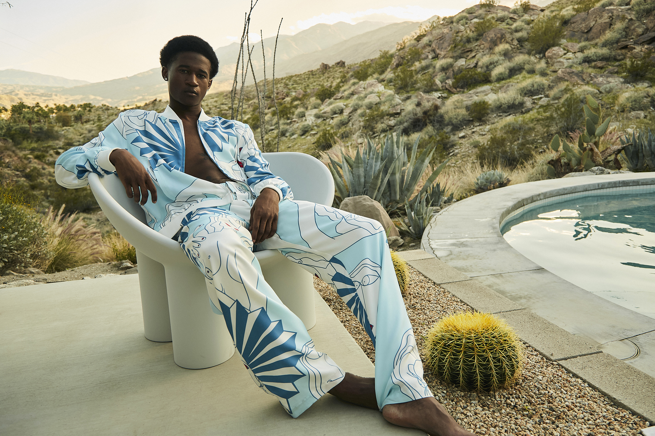 For this new collection’s print, Uter continues to emphasize faces and accentuate lips. The palm design came from a trip to Egypt with his father, where he was inspired by the lush palms that adorned the banks of the Nile.