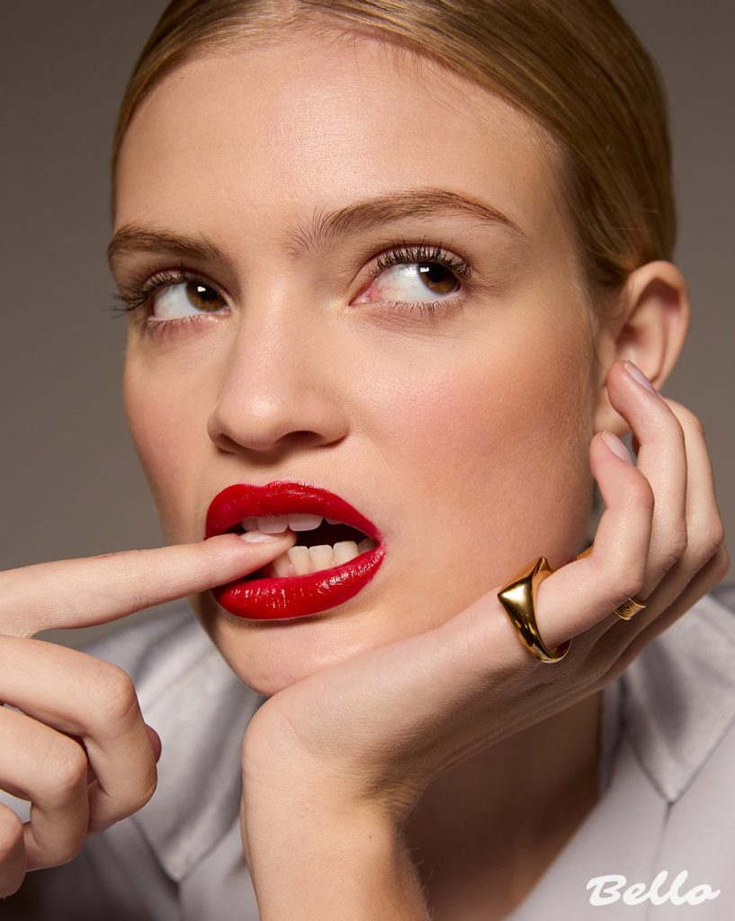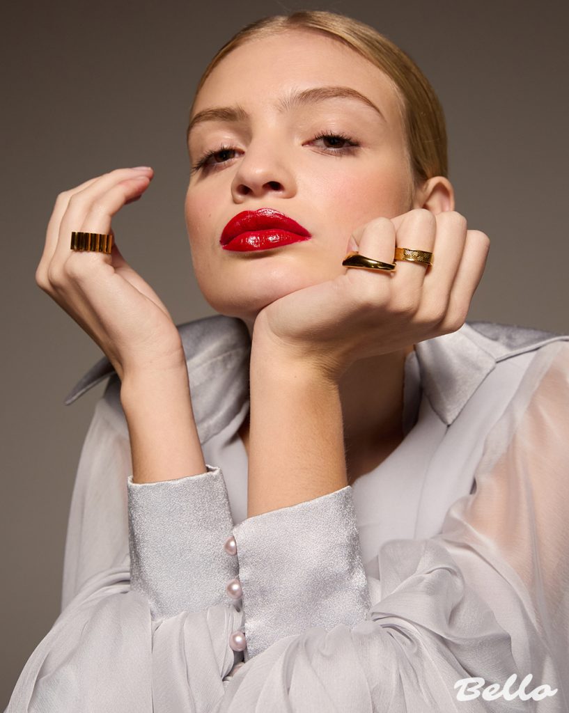 This is beauty as art. A balance of strength and softness, of vintage romance and contemporary edge. A moment of pure, unfiltered opulence—captured in gold and crimson.
